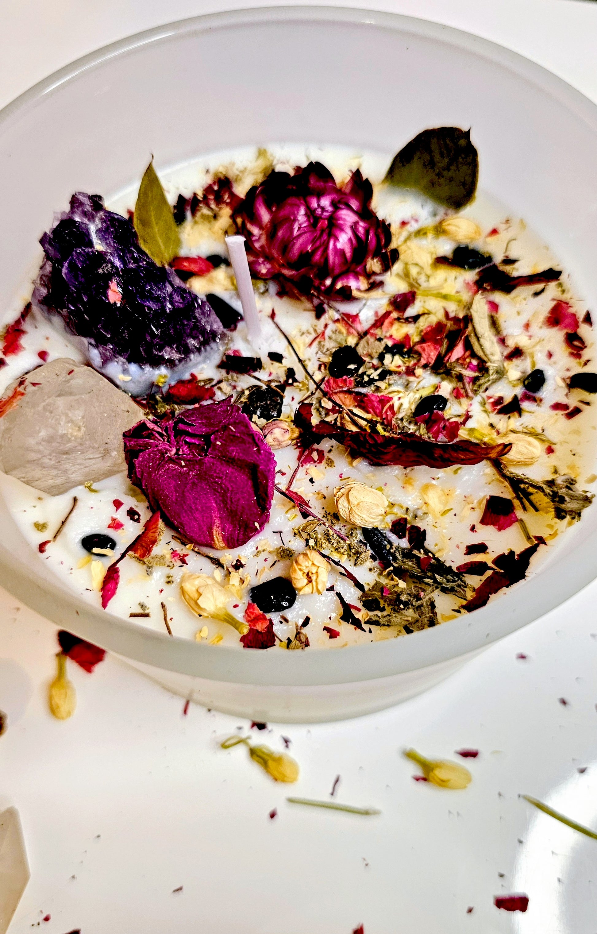 Scorpio candles will assist you with amplifying that powerful, beautiful, transformational, sexy, seductive, magnetic, alluring, intuitive Scorpio energy. Make a wish when your energy is most powerful during your solar return or simply to manifest. Infused with natural crystals, flowers, oils and herbs.