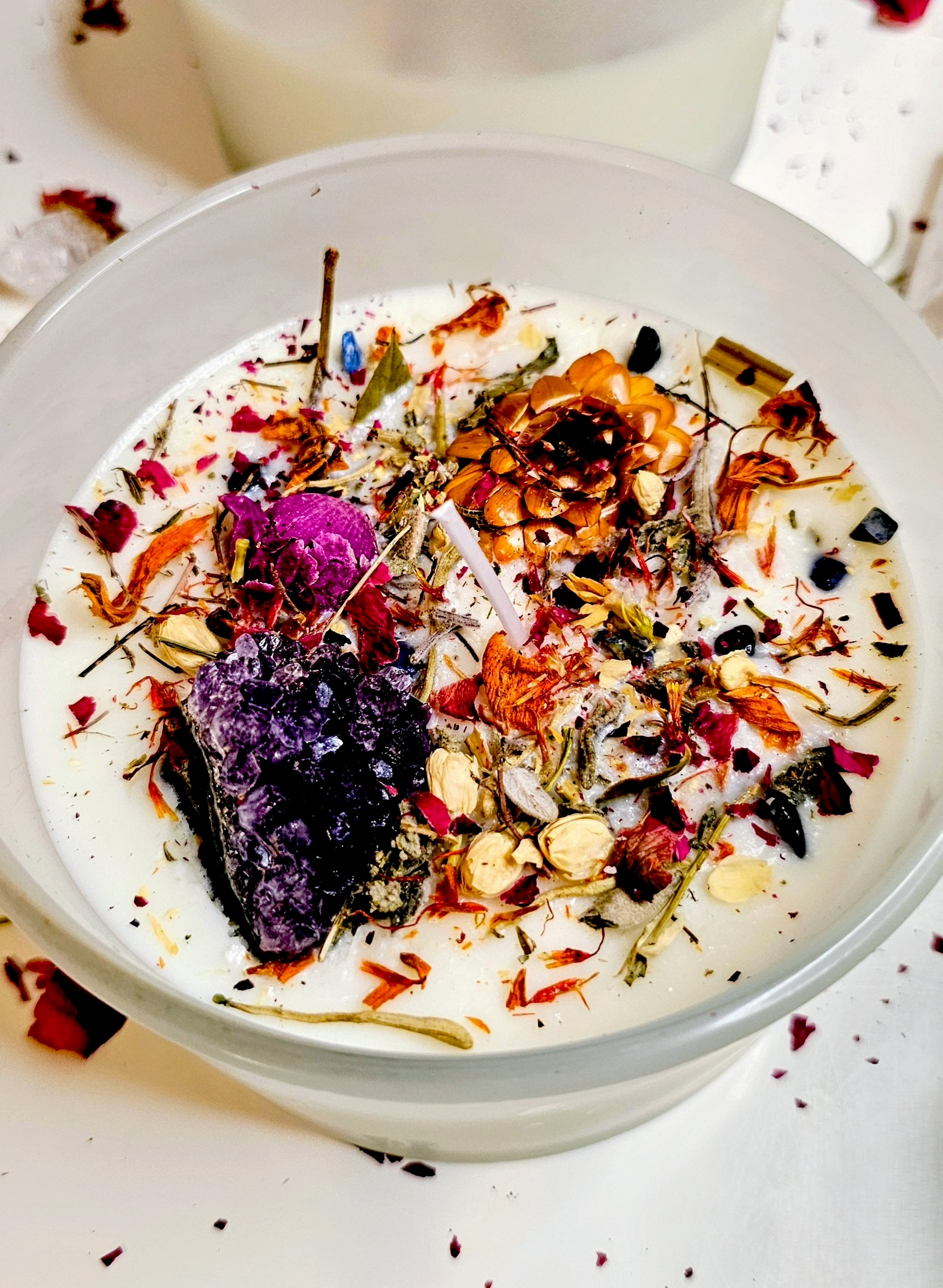 Pisces candle will assist you with amplifying that powerful, beautiful, intuitive, loving, sexy Pisces energy. Make a wish when your energy is most powerful during your solar return or simply to manifest. Infused with natural crystals, flowers, oils and herbs.